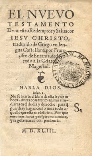 La figura de Enzinas resulta fascinante. Nacido en Burgos, en el año 1518, tuvo que hacer caso a su tío Pedro Lerma y huyó de España para poder dedicarse al estudio y traducción de la Biblia: "Márchate a un lugar donde todavía puedas acercarte a las Santas Escrituras con libertad, donde puedas escribir con libertad, donde sea posible leer con libertas".